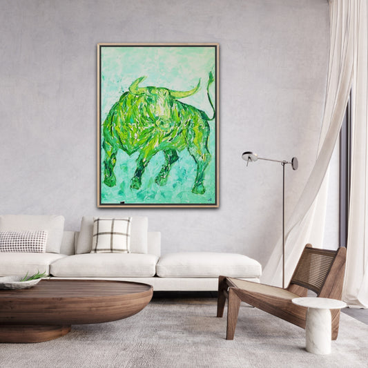 Unique Original Art Painting "Green Taurus" Acrylic Paint On Canvas